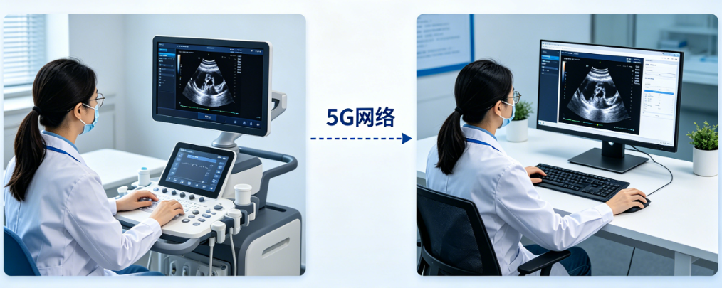 传统的超声诊断受限于物理空间,专家只能坐诊本院。超声会诊系统利用5G/光纤网络,实现了超声动态影像的实时、无损传输。这意味着,三甲医院的专家无需离开诊室,即可通过屏幕同步查看基层医院的超声画面,并进行远程标注与语音指导。